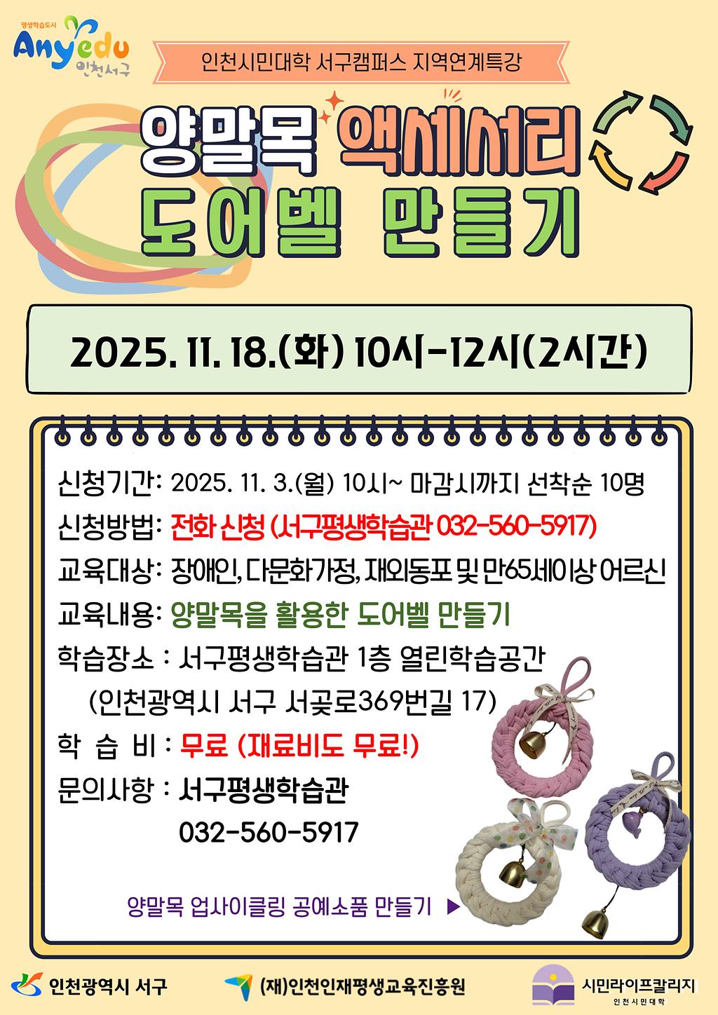 [2025년 성과공유회 연계] "양말목 액세서리 : 도어벨 만들기" 특강 학습자 모집