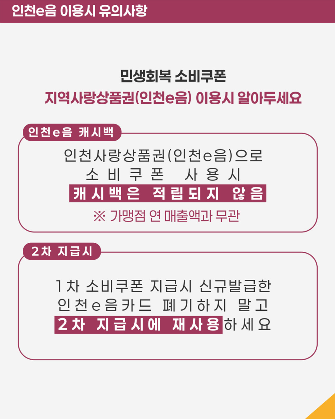 민생회복 소비쿠폰 지역사랑상품권(인천e음) 사용안내