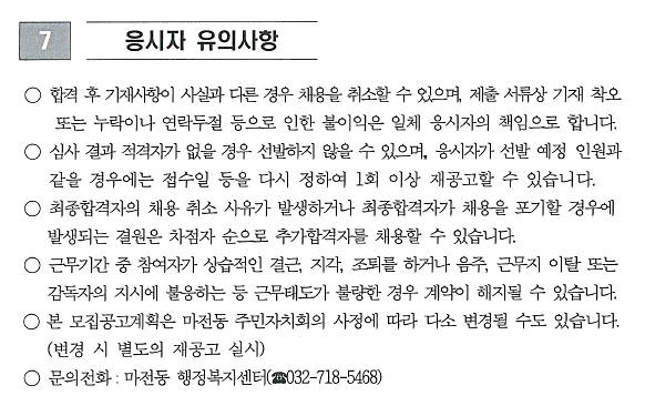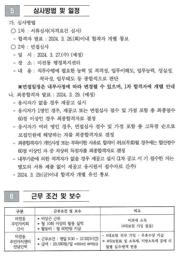 마전동 주민자치회 간사 및 주민자치센터 전담인력 모집 공고