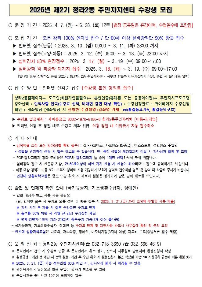 * "인천대 생활과학교실" 강좌: 재료비 및 운영시간이 변경되었으니 참고하시기 바랍니다.