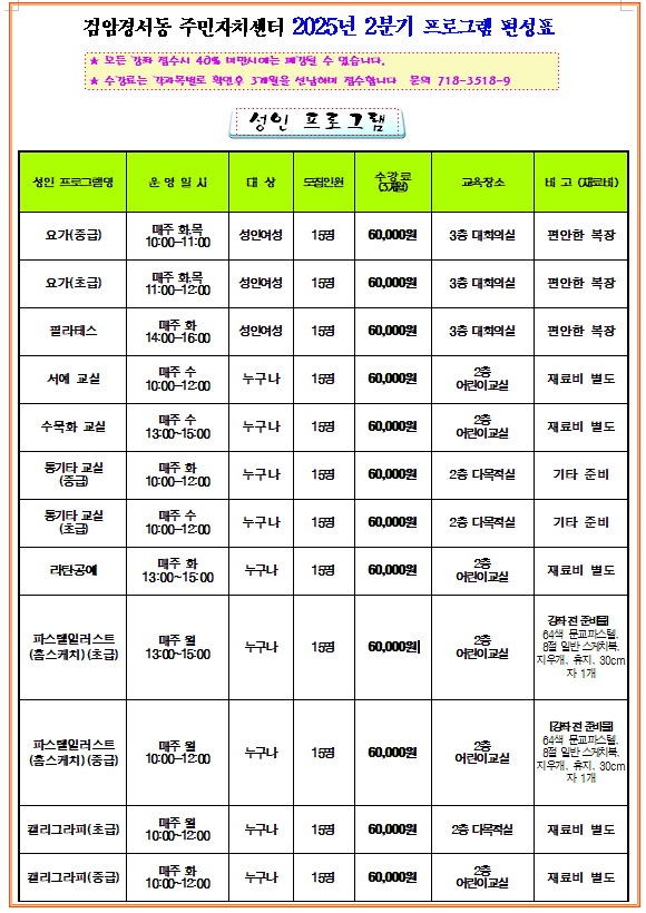 2025년도 2분기 검암경서동 행정복지센터 프로그램 수강생 모집