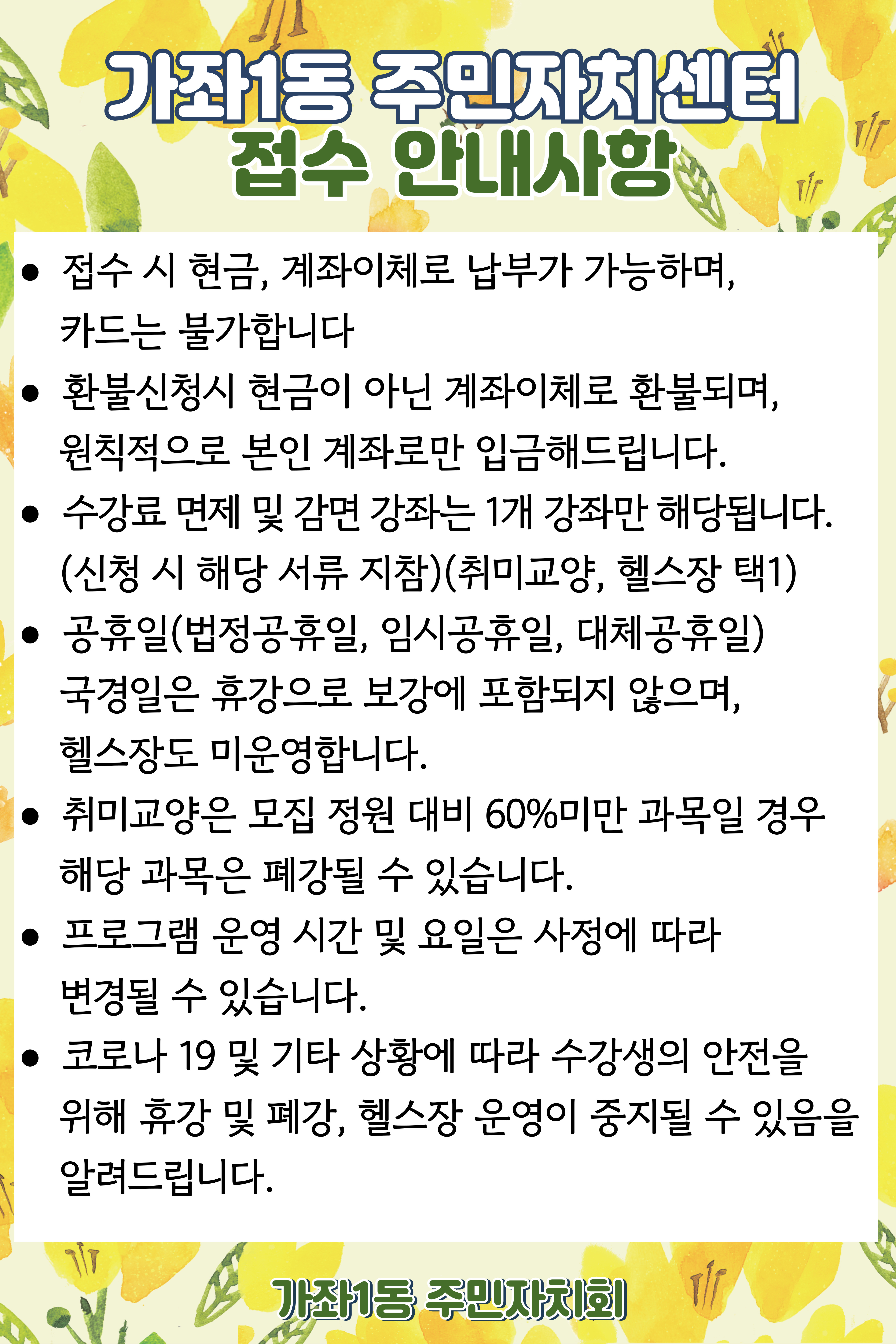 2025년도 2분기 가좌1동 주민자치센터 취미교양교실 수강생 모집 안내문 공고합니다.