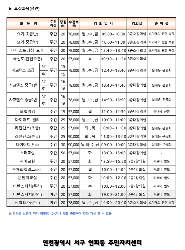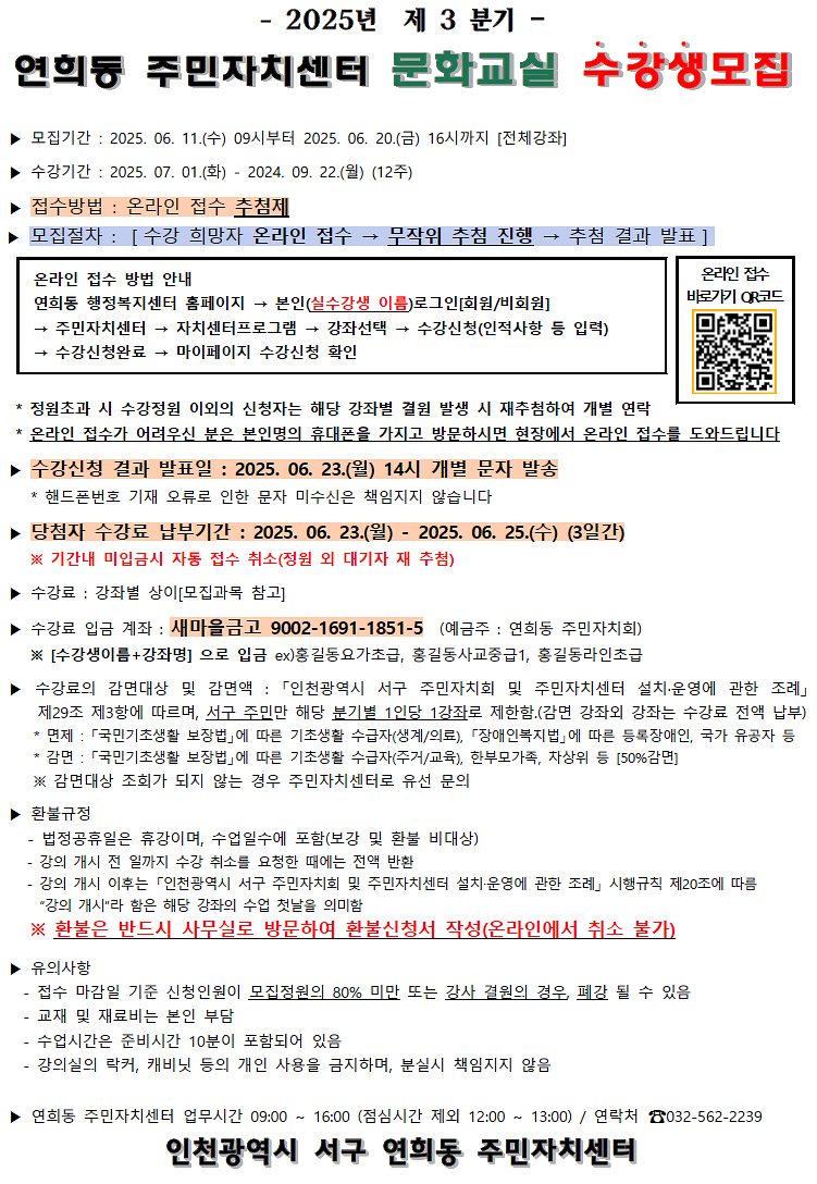 2025년 3분기 연희동 주민자치센터 문화교실 수강생 모집