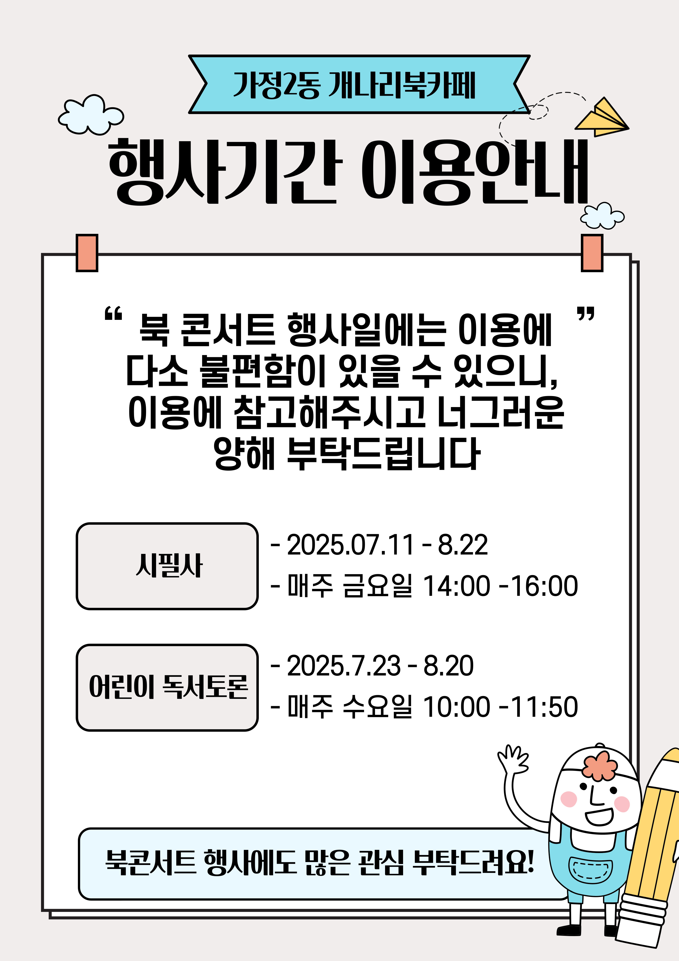 북카페 이용에 다소 불편함이 있을 수 있습니다.(소음 등)