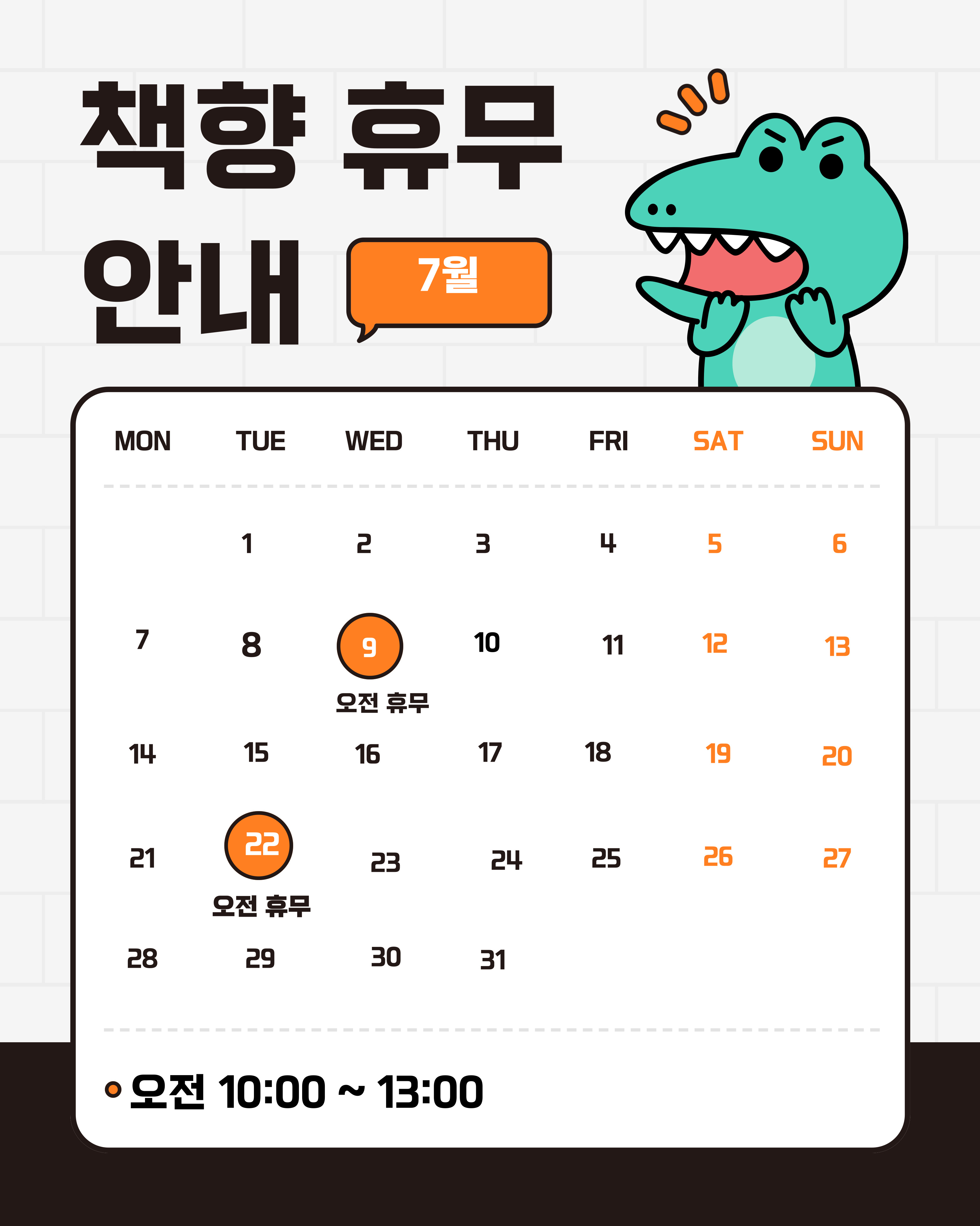 가정1동 북카페 '책향' 7.9./7.22 오전 휴무 안내