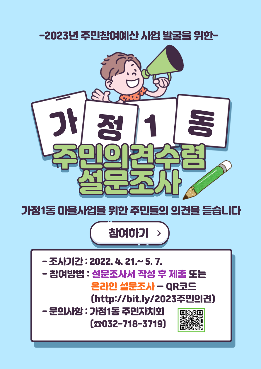 가정1동 주민자치회에서는 2023년 주민참여예산 사업 의제 발굴을 위해