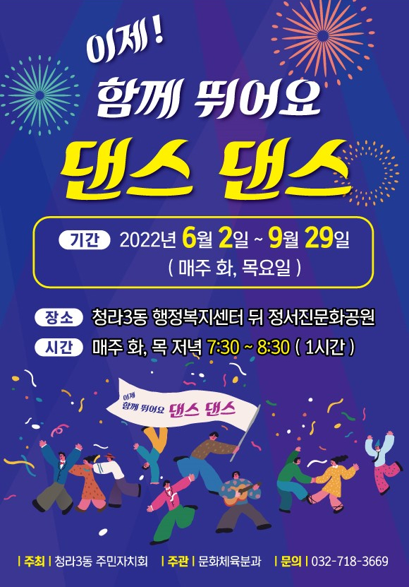 '이제! 함께 뛰어요 댄스 댄스' 청라3동 문화체육분과 사업 참여 안내