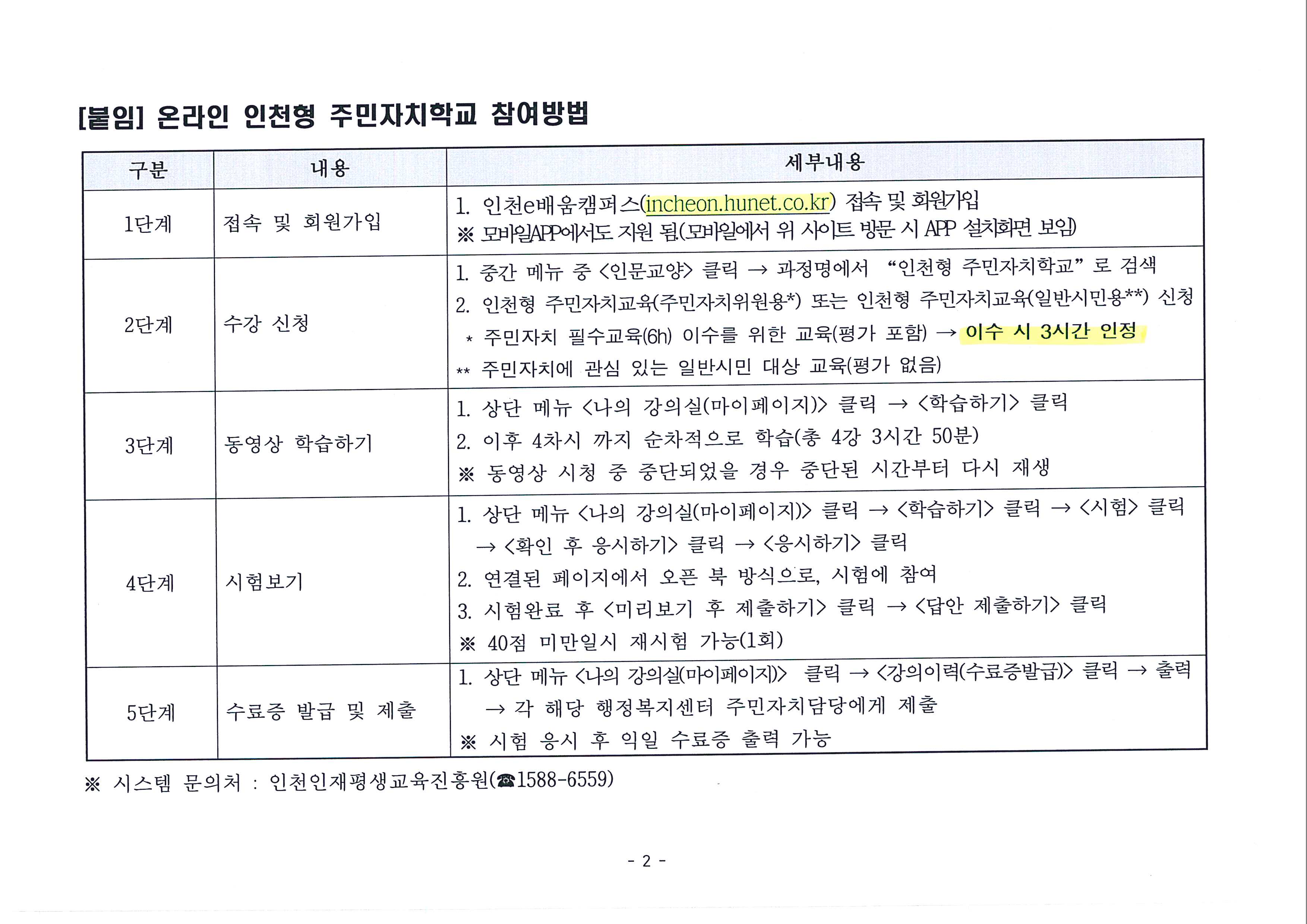 주민자치회 역량강화 등을 위한 인천형 주민자치학교 개설 안내