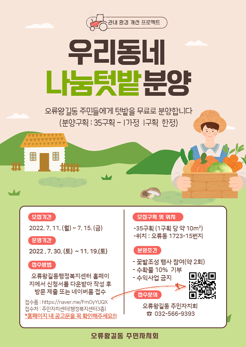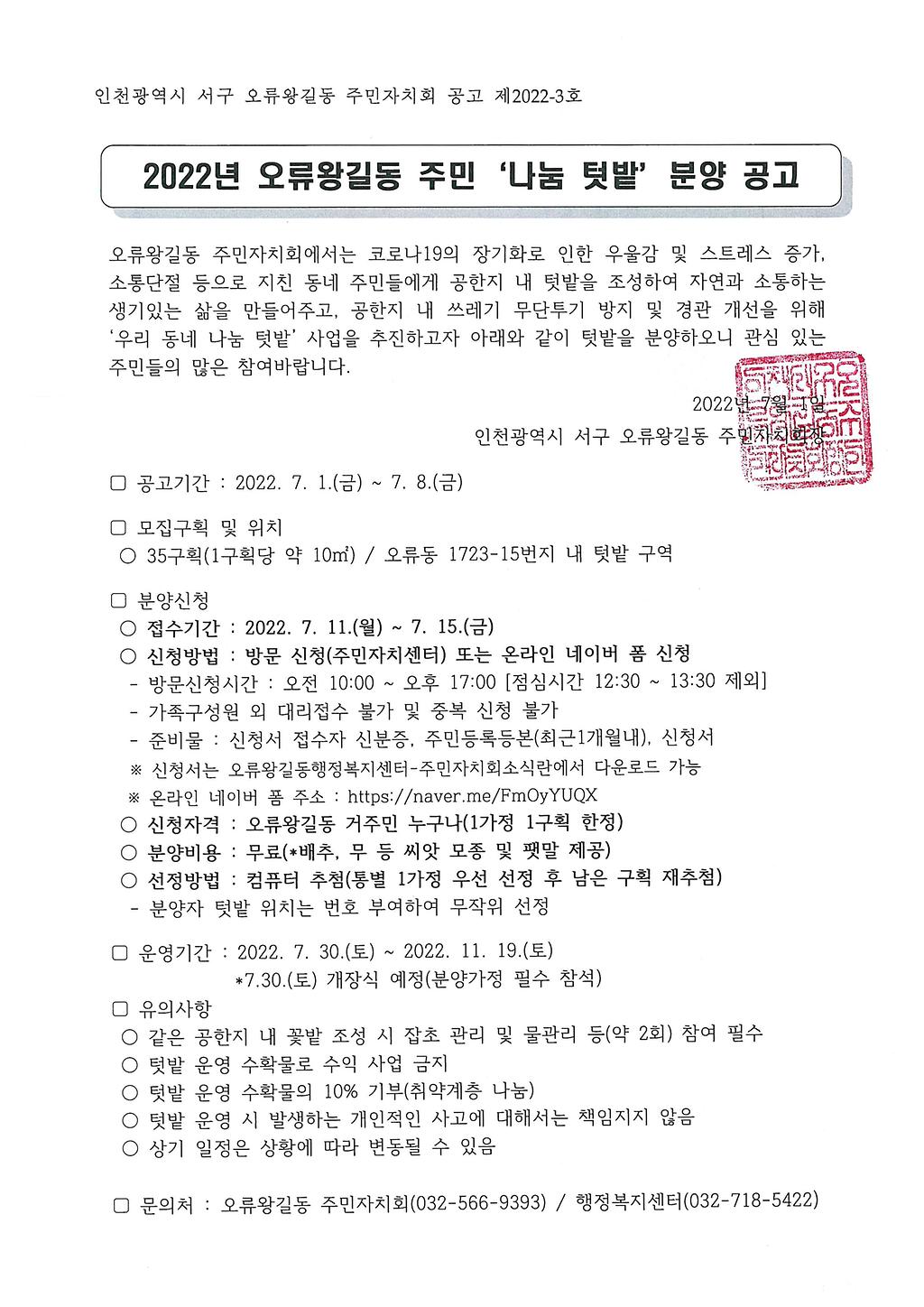 오류왕길동 주민 대상 '우리동네 나눔텃밭' 분양 공고
