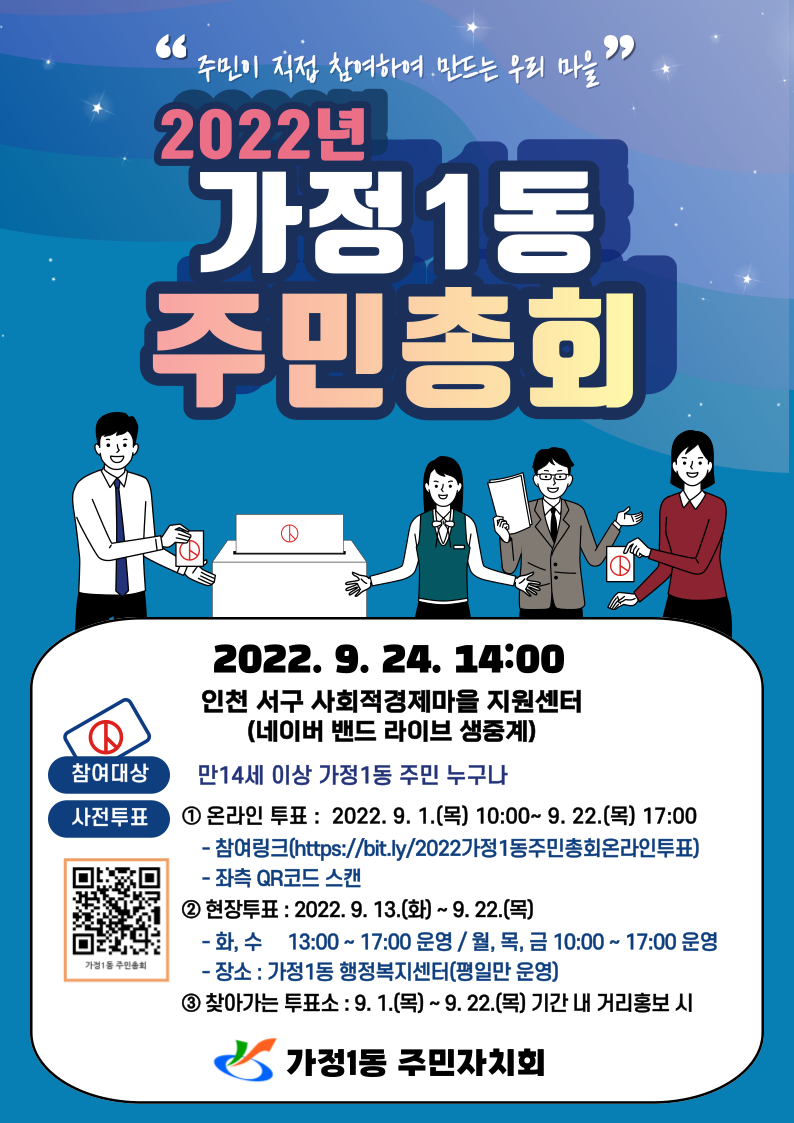 2022년 가정1동 주민총회 개최와 관련하여 주민총회 상정안건에 대해 붙임과 같이 홍보하오니