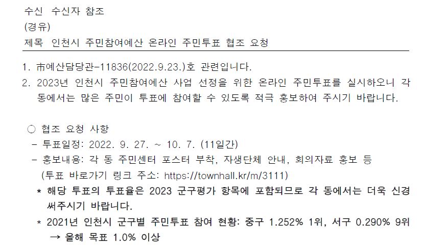 2022년 제2회 청라1동 주민총회 개최 결과 공고