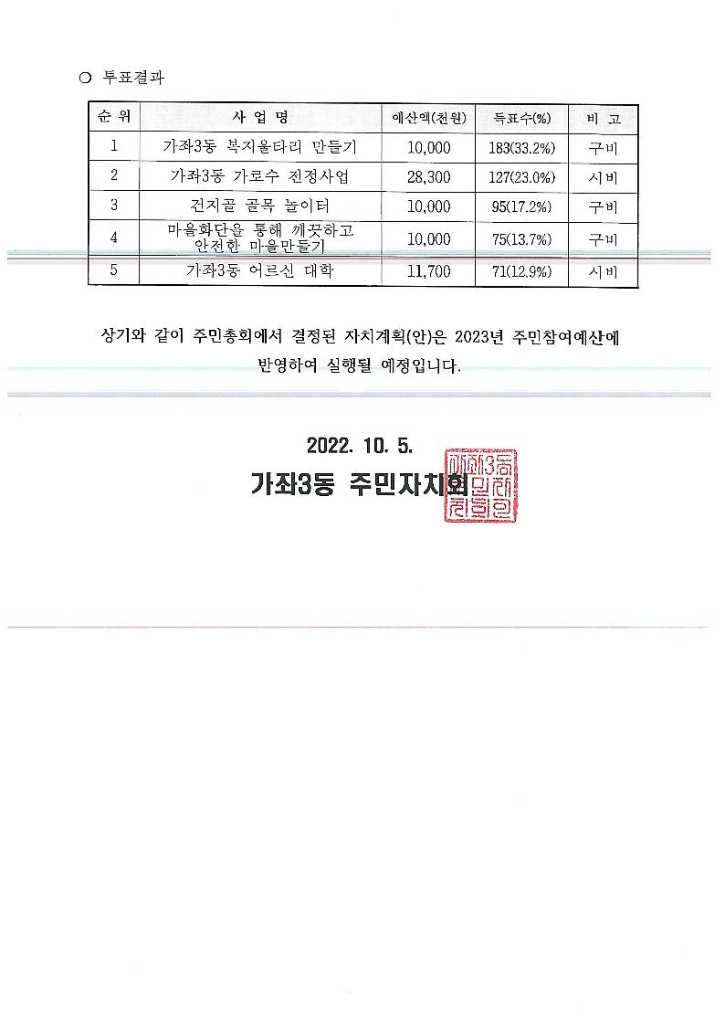 검단동 주민총회 개최 결과 공고