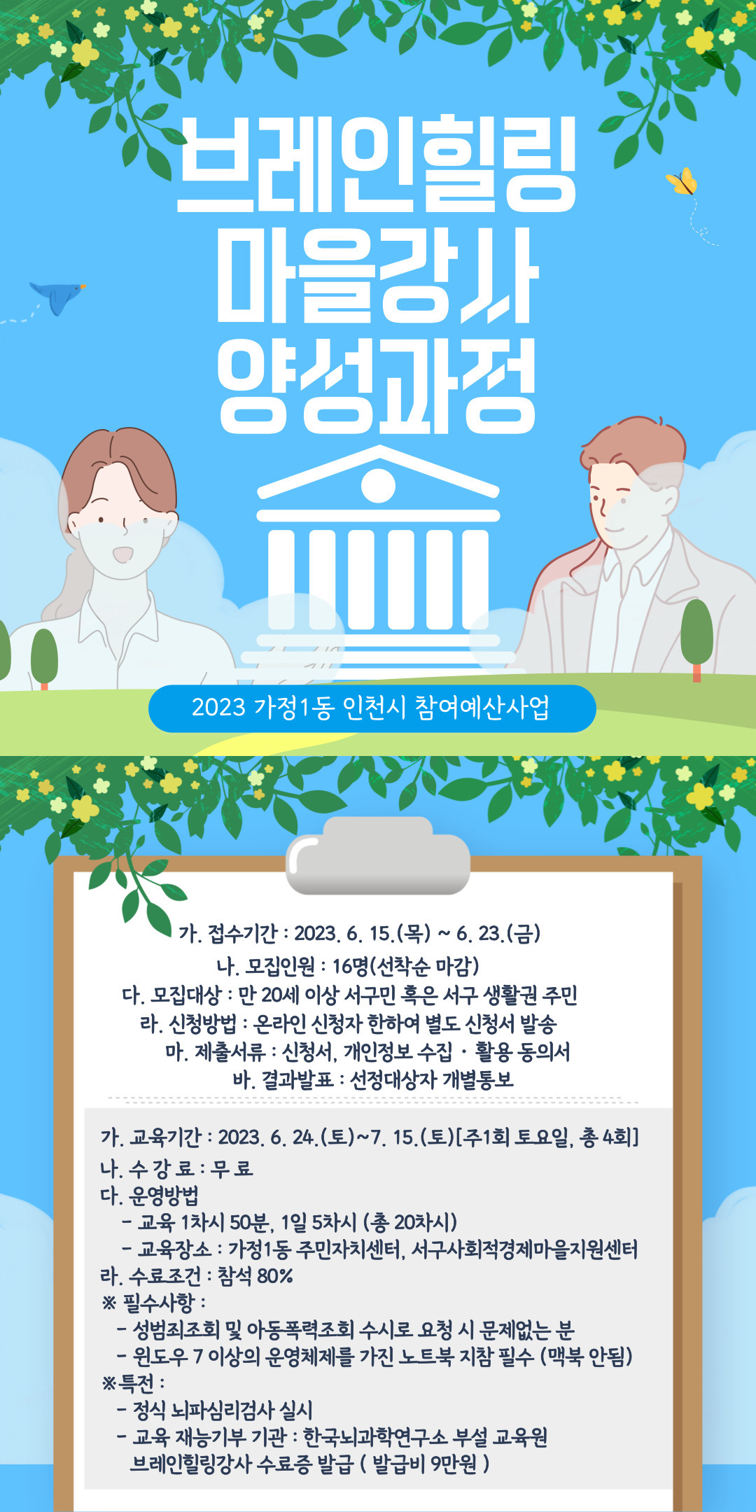 <가정1동 브레인 마을> 브레인 힐링 강사 양성과정 안내