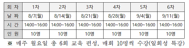 ※7/18(화) 09:00이후 접수된 신청건부터 인정되며, 강의별 선착순으로 마감됩니다(마감 이후 신청한 분들은 대기자로 추후 인원 공백 발생시 연락 드릴 예정)