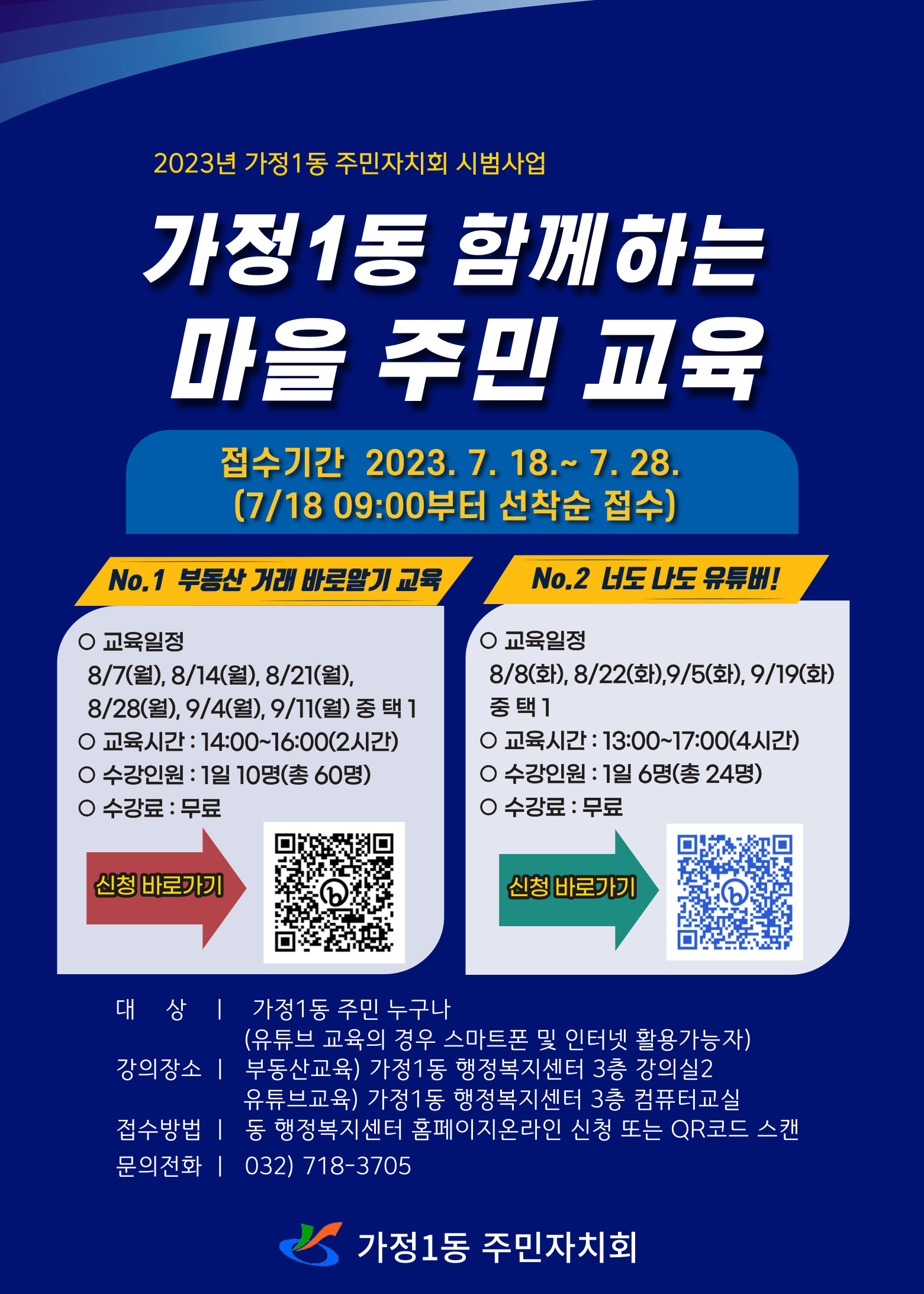 2023년 가정1동 주민자치회 시범사업으로 운영하는 <가정1동 함께하는 마을 주민 교육> 프로그램을 안내드립니다.