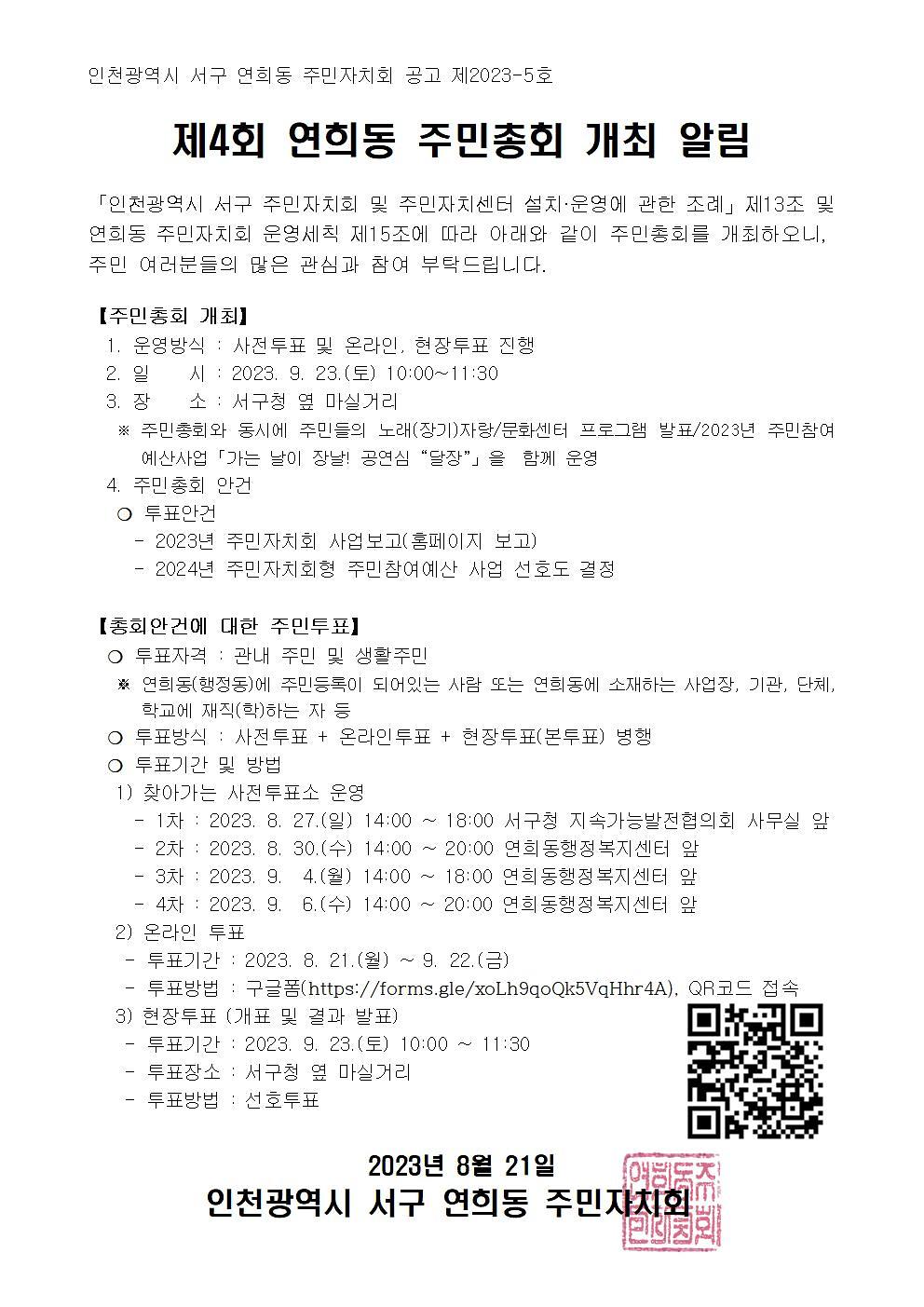 2023년 검단동 주민총회 개최 공고