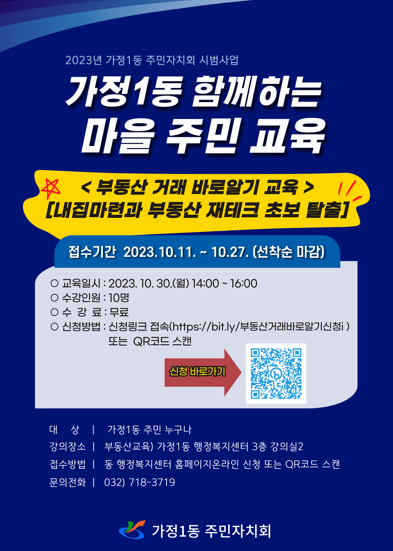 가정1동 함께하는 마을 주민 교육(내집 마련과 부동산 재태크 초보 탈출) 신청 안내