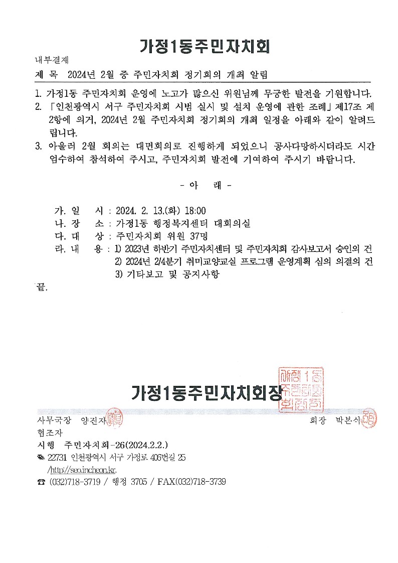 2024년 2월 주민자치회 정례회의 개최 안내