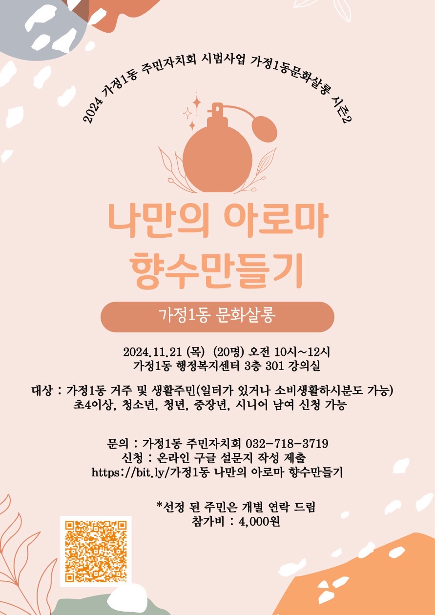 가정1동 주민자치회 문화살롱 시즌2 <나만의 아로마향수 만들기>