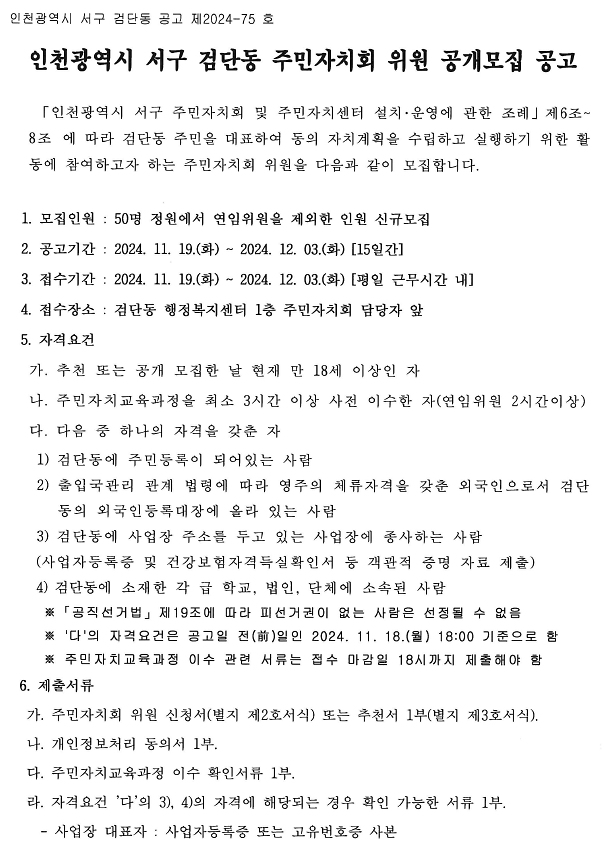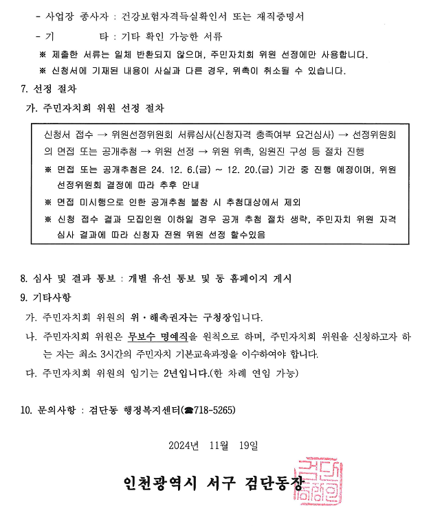 주민자치회 위원 공개모집 서류 및 교육 안내