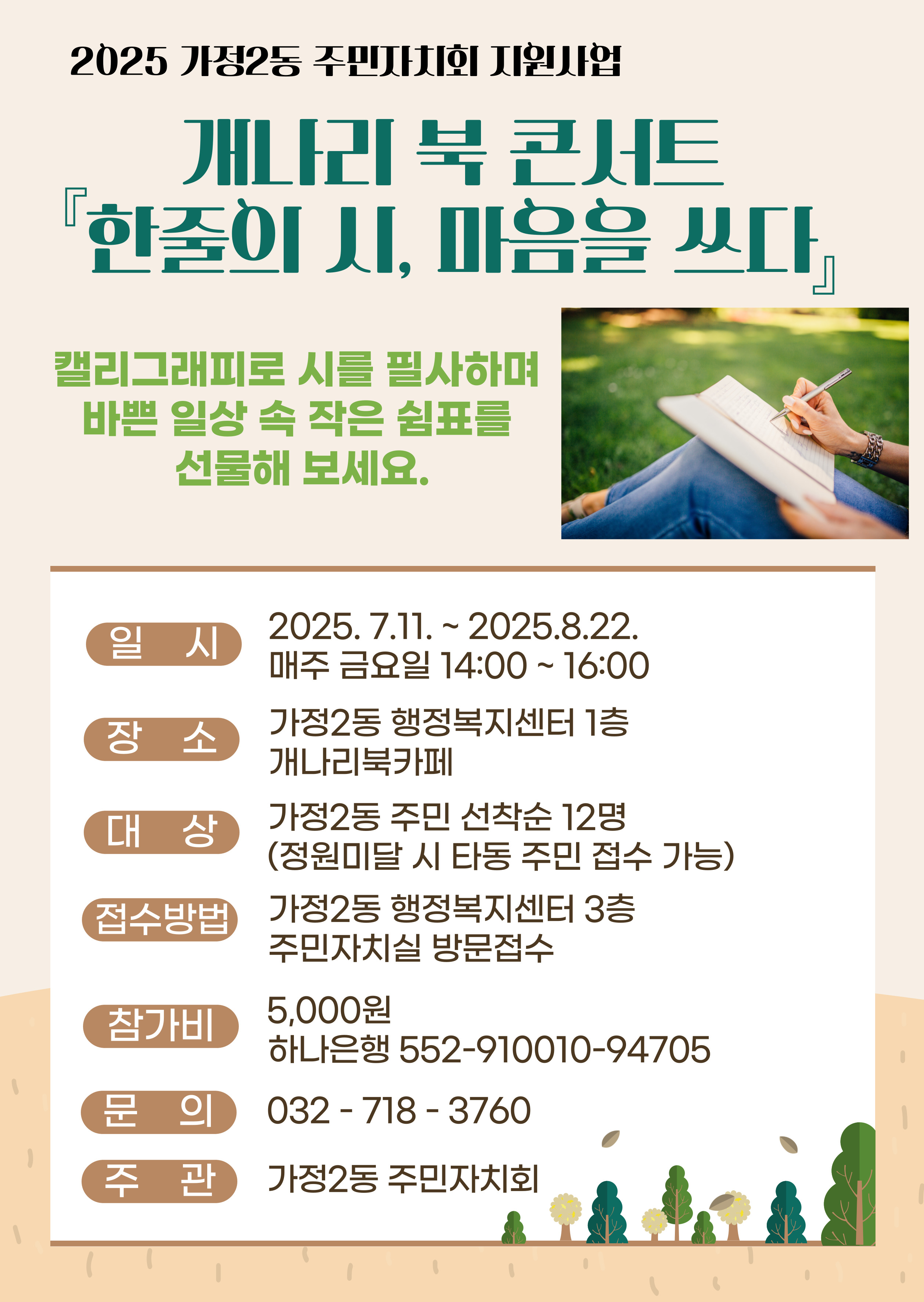 2025년 가정2동 주민자치회 지원사업 참여자를 모집합니다.