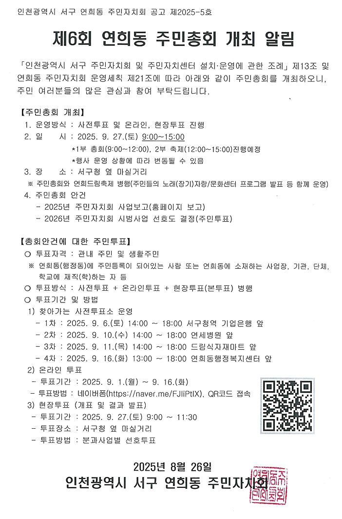 제6회 연희동 주민총회 개최 알림