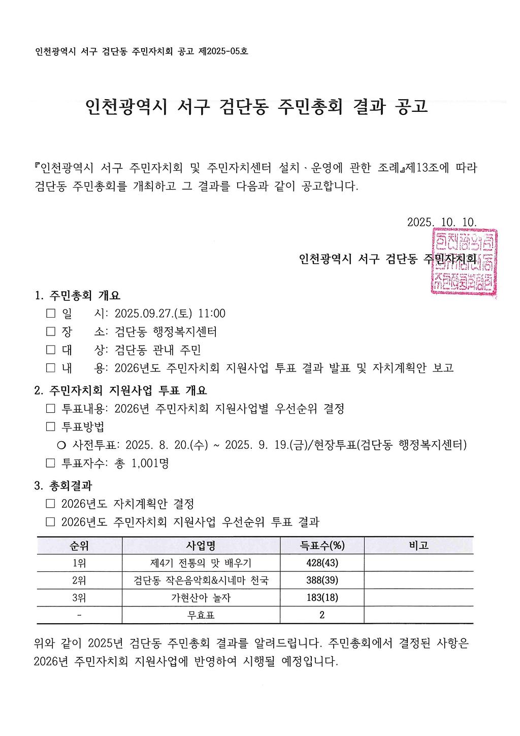 - 담당팀 : 주민자치팀