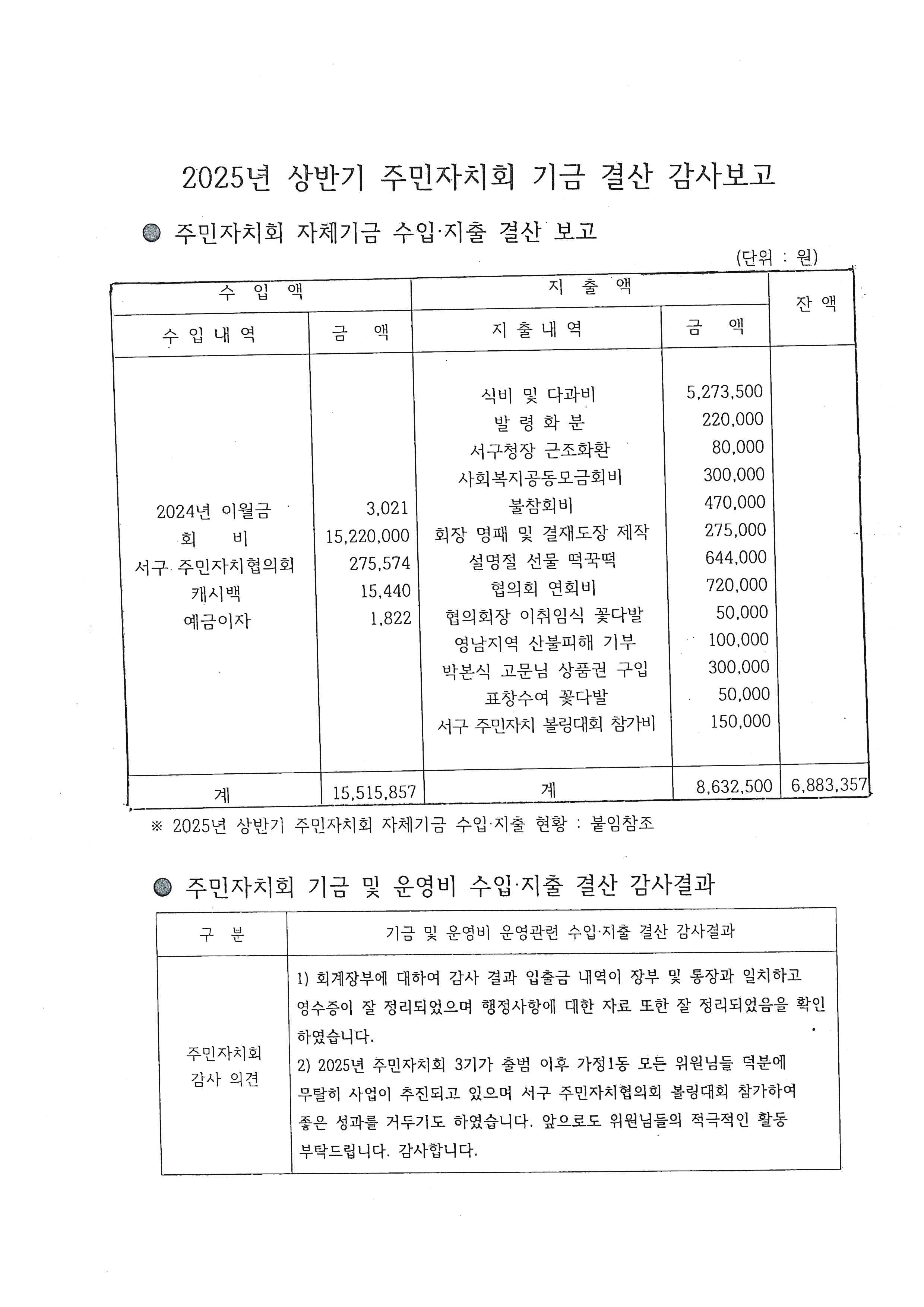 2025년 상반기 가정1동 결산 감사 결과 공개
