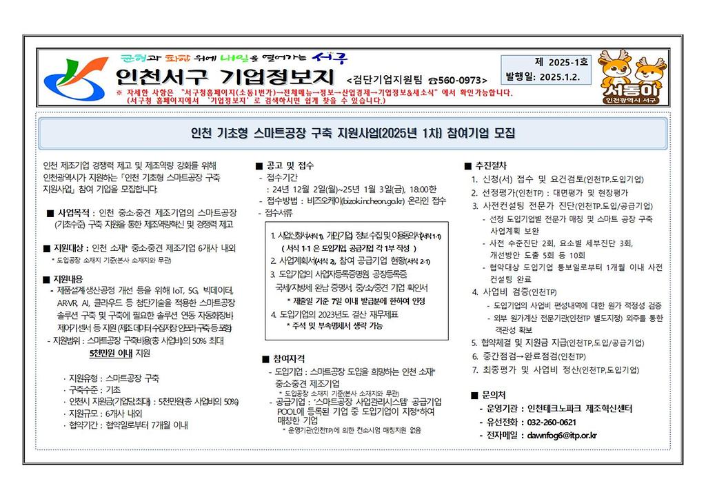 1. 인천 기초형 스마트공장 구축 지원사업(2025년 1차) 참여기업 모집