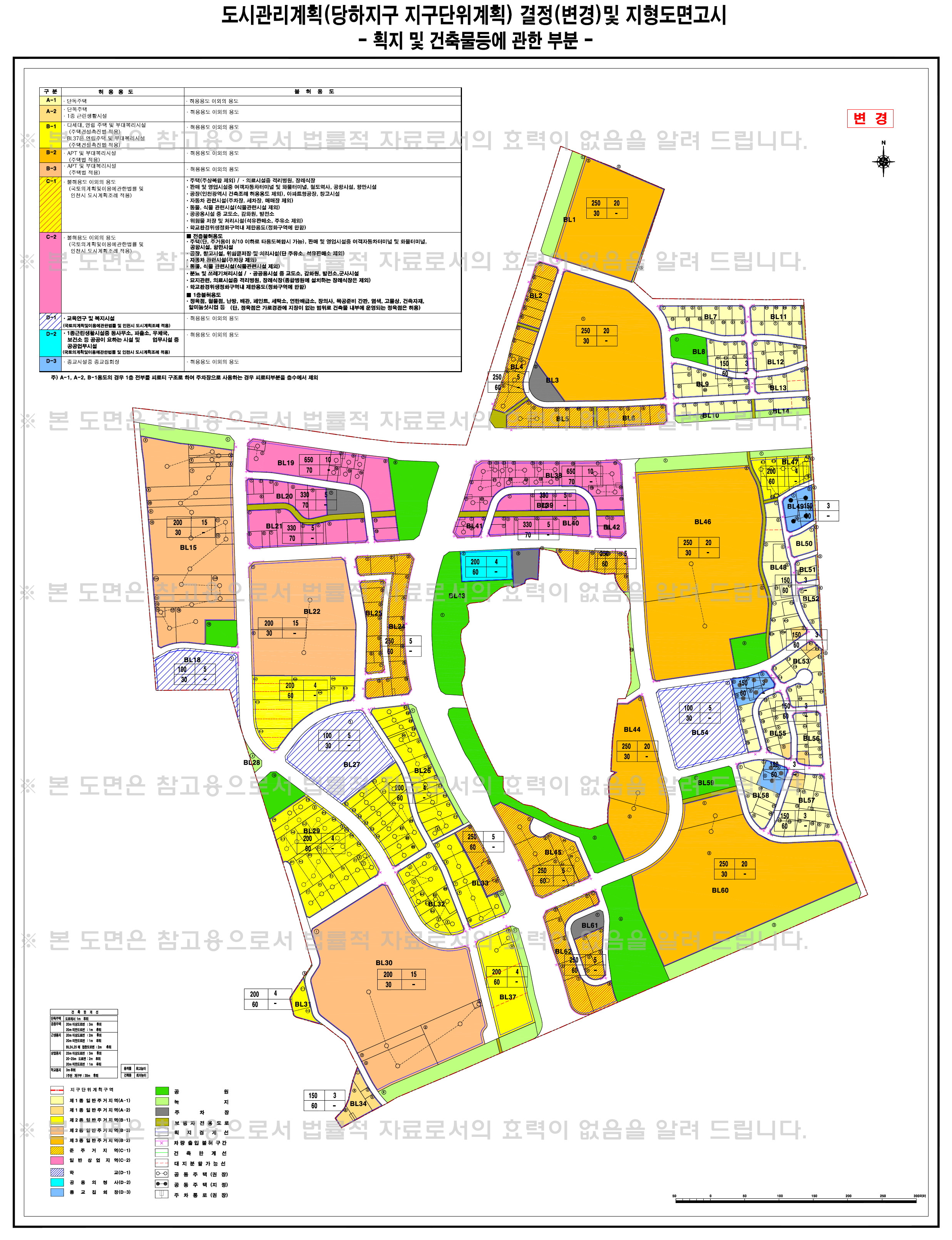 당하지구 도시관리계획(당하지구 지구단위계획) 결정(변경) 및 지형도면고시 (획지 및 건축물등에 관한 부분)