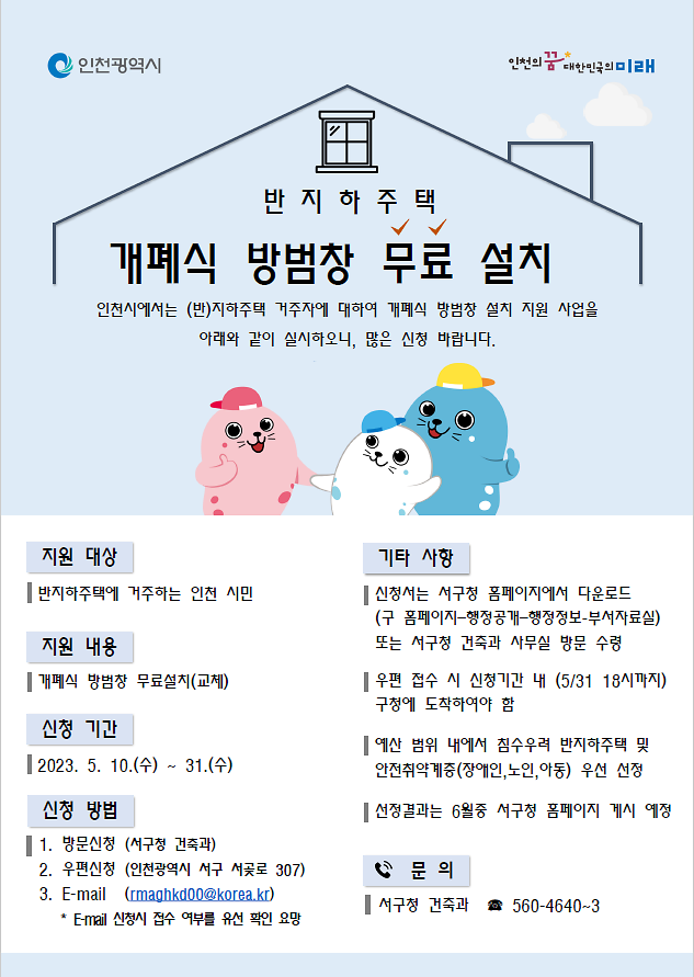 반지하주택 개폐식 방범창 설치 지원사업 신청 안내