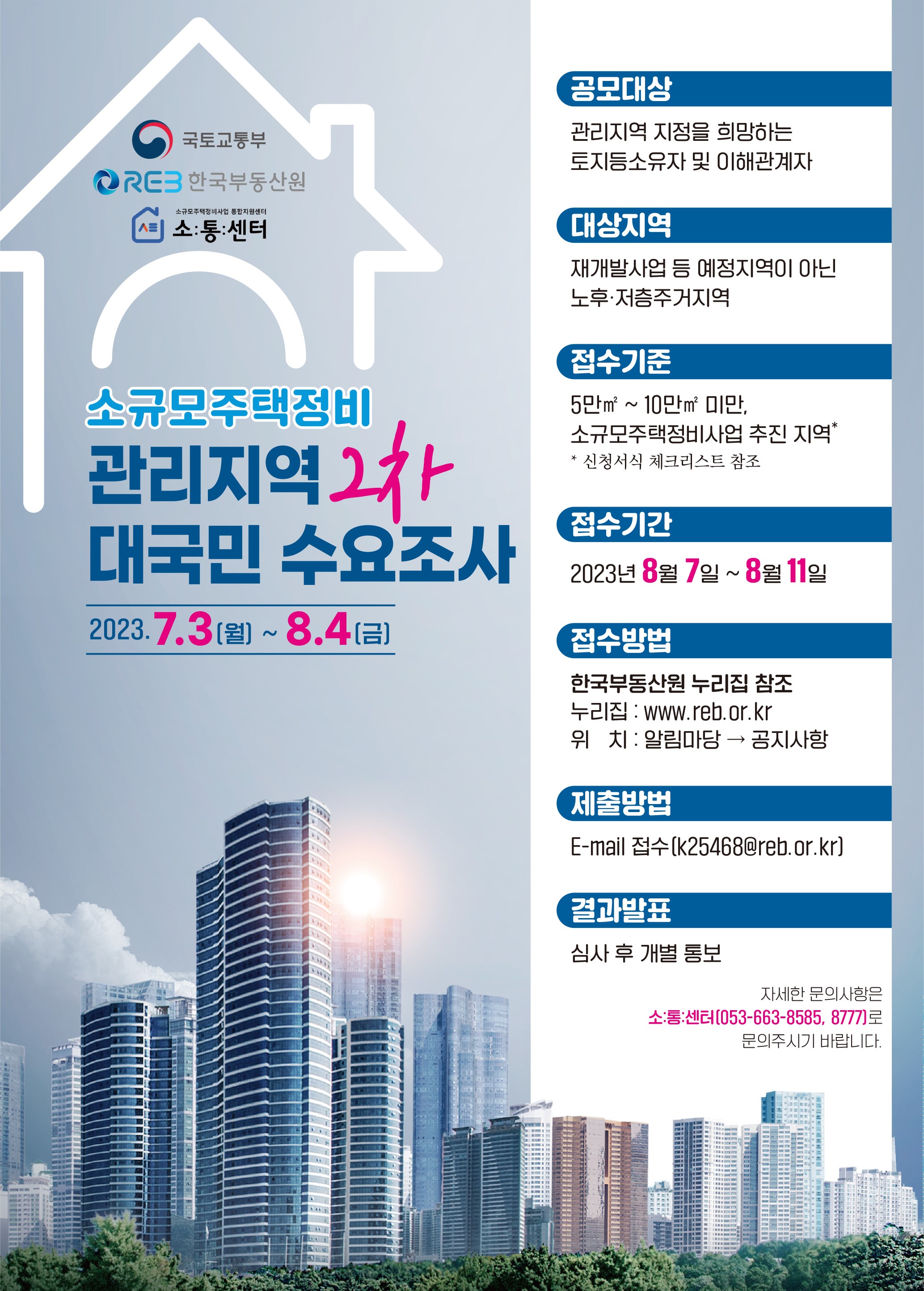 (종료)「소규모주택정비 관리지역 2차 대국민 수요조사(공모)」 실시 안내