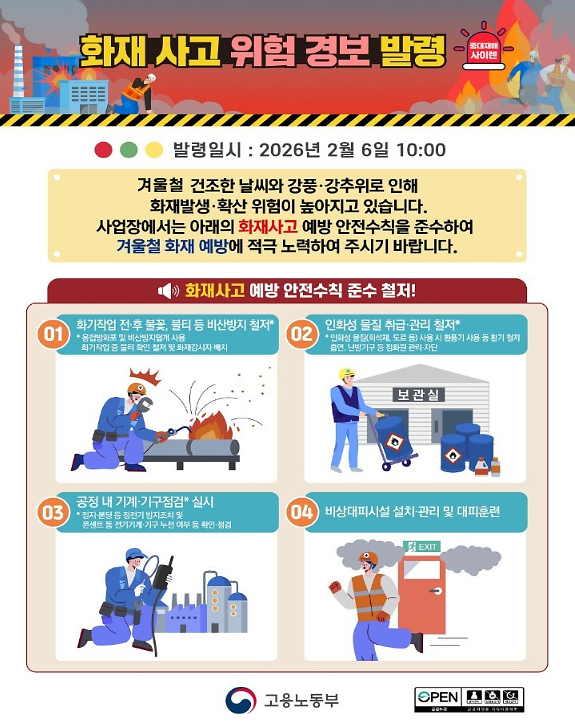 이에 정부에서는 사업장에 화재 사고 위험 경보가 발령함에 따라,