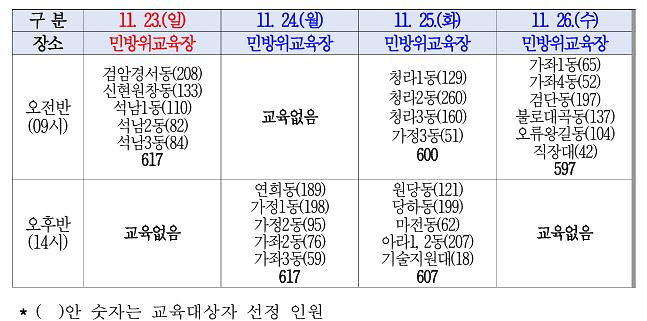 * 가좌3동 교육일정 : 11. 24.(월) 14시~18시