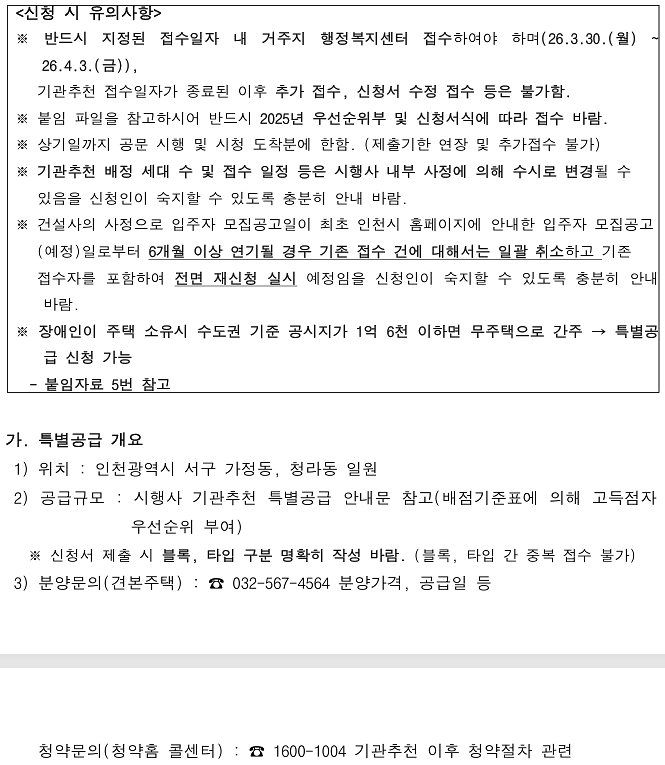 (공공분양) 장애인 특별공급 기관추천 안내(인천가정 B2블록)