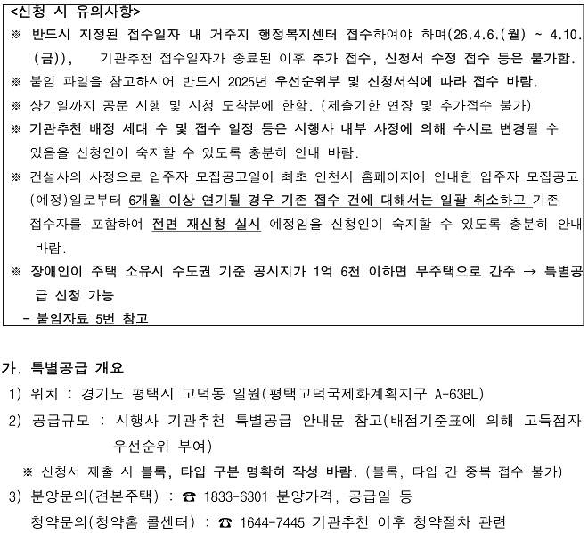 (민간분양) 장애인 특별공급 기관추천 안내(고덕신도시 아테라)