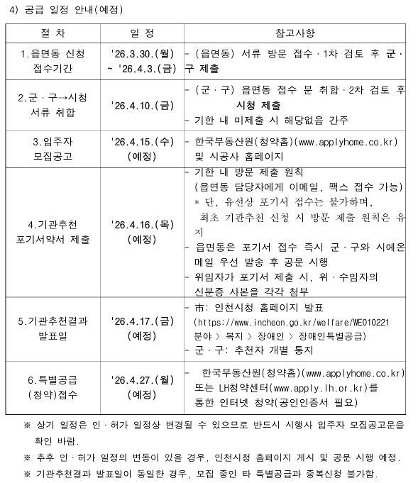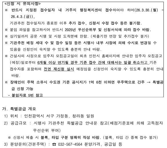 (공공분양)장애인특별공급 기관추천 대상자 안내(인천가정2 B2블록)