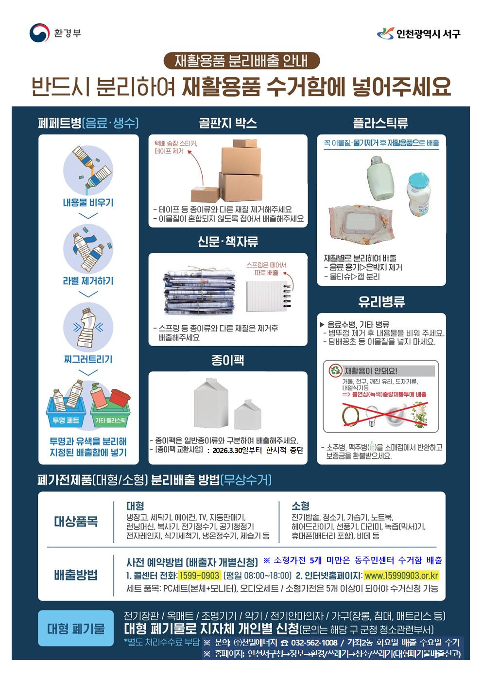 - 문의: (주)천일에너지 전화번호 032-562-1008, 서구청 자원순환과 032-560-4553