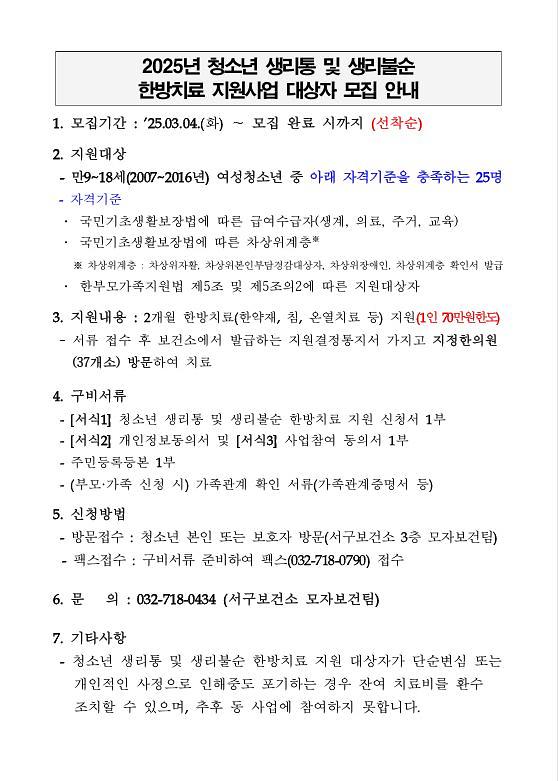 저소득층 여성청소년 생리통 및 생리불순 한방치료 지원사업 안내