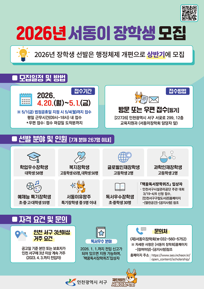 2026년 서동이 장학생 모집 안내