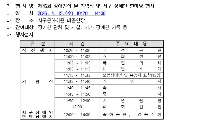 제46회 장애인의 날 기념식 및 서구 장애인 한마당 행사 안내