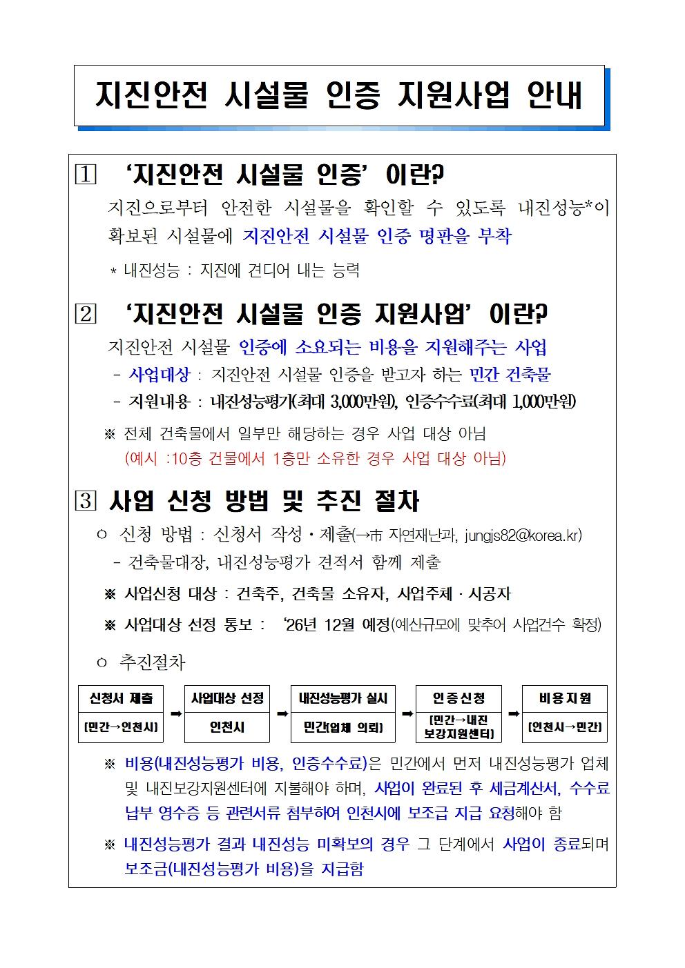 2027년 지진안전 시설물 인증 지원사업 안내