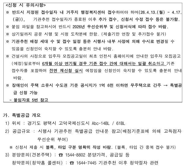 (민간분양)장애인특별공급 기관추천대상 안내(고덕국제신도시 수자인풍경채 1,2단지)