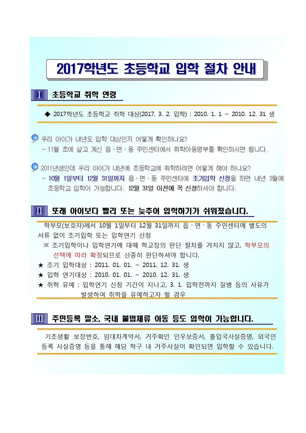 2017학년도 초등학교 입학 절차 안내