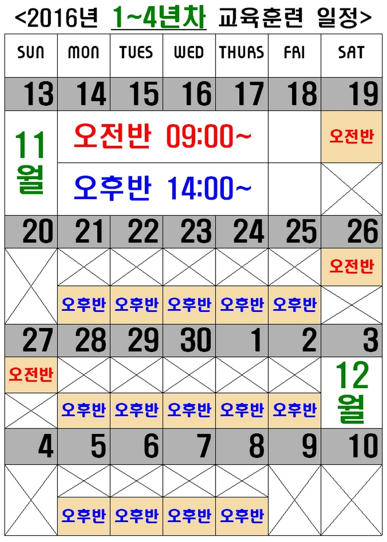 ※교육일시는 표에 나온 오전/오후반중에 편한 일자 선택하시면 됩니다.