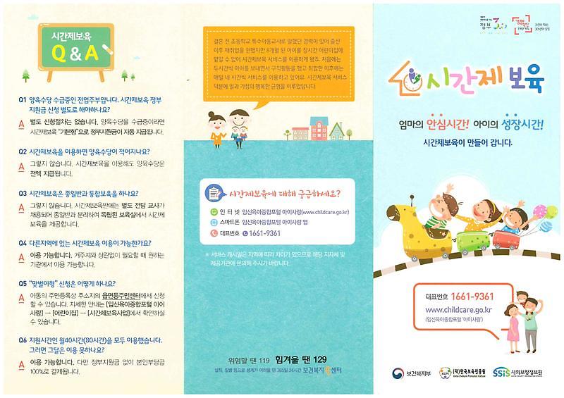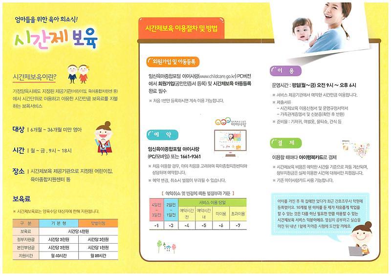 시간제 보육 이용절차 및 방법과 홍보 동영상을 위와같이 안내하오니 시간제 보육 이용이 필요하신 분께서는 참고하시기 바랍니다.