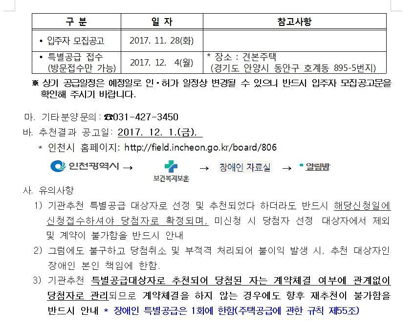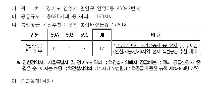 민영주택 장애인특별공급 신청 안내(‘안양 센트럴 헤센’)