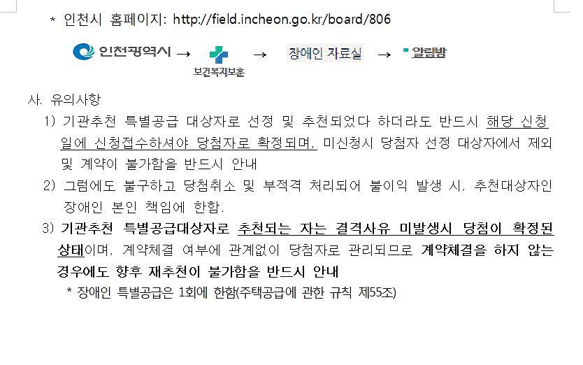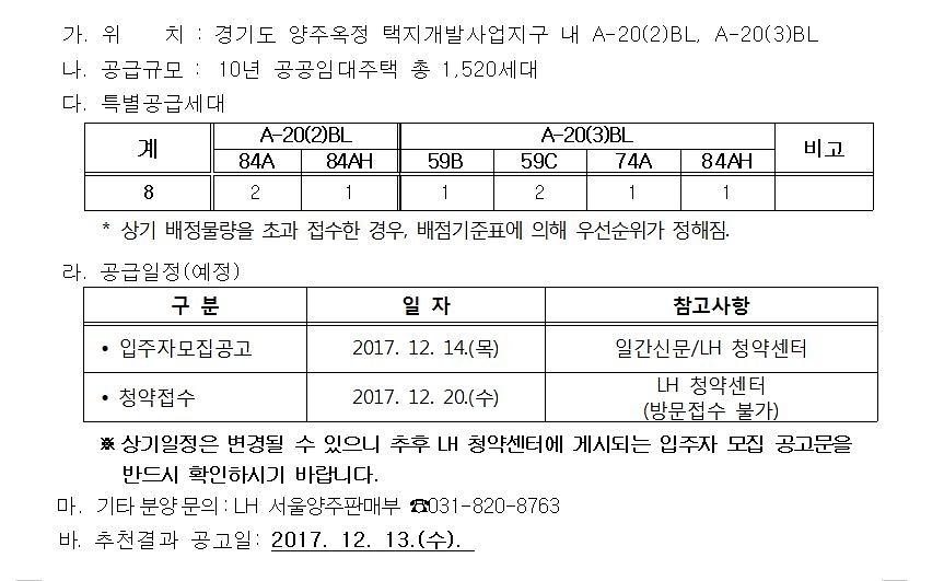 공공임대주택 장애인특별공급 신청 안내(양주신도시 옥정지구)