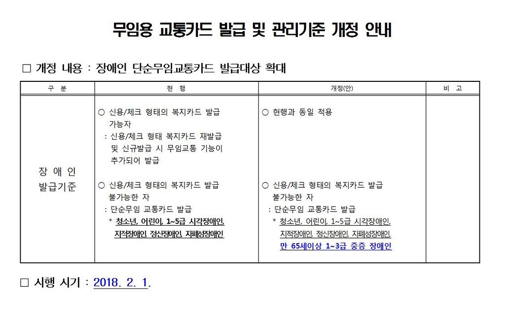 무임용 교통카드 발급 및 관리기준 개정 안내