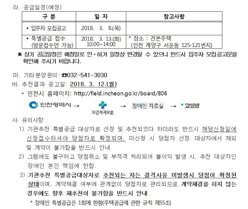 민영주택 장애인특별공급 신청 안내(‘계양 효성해링턴 플레이스’)